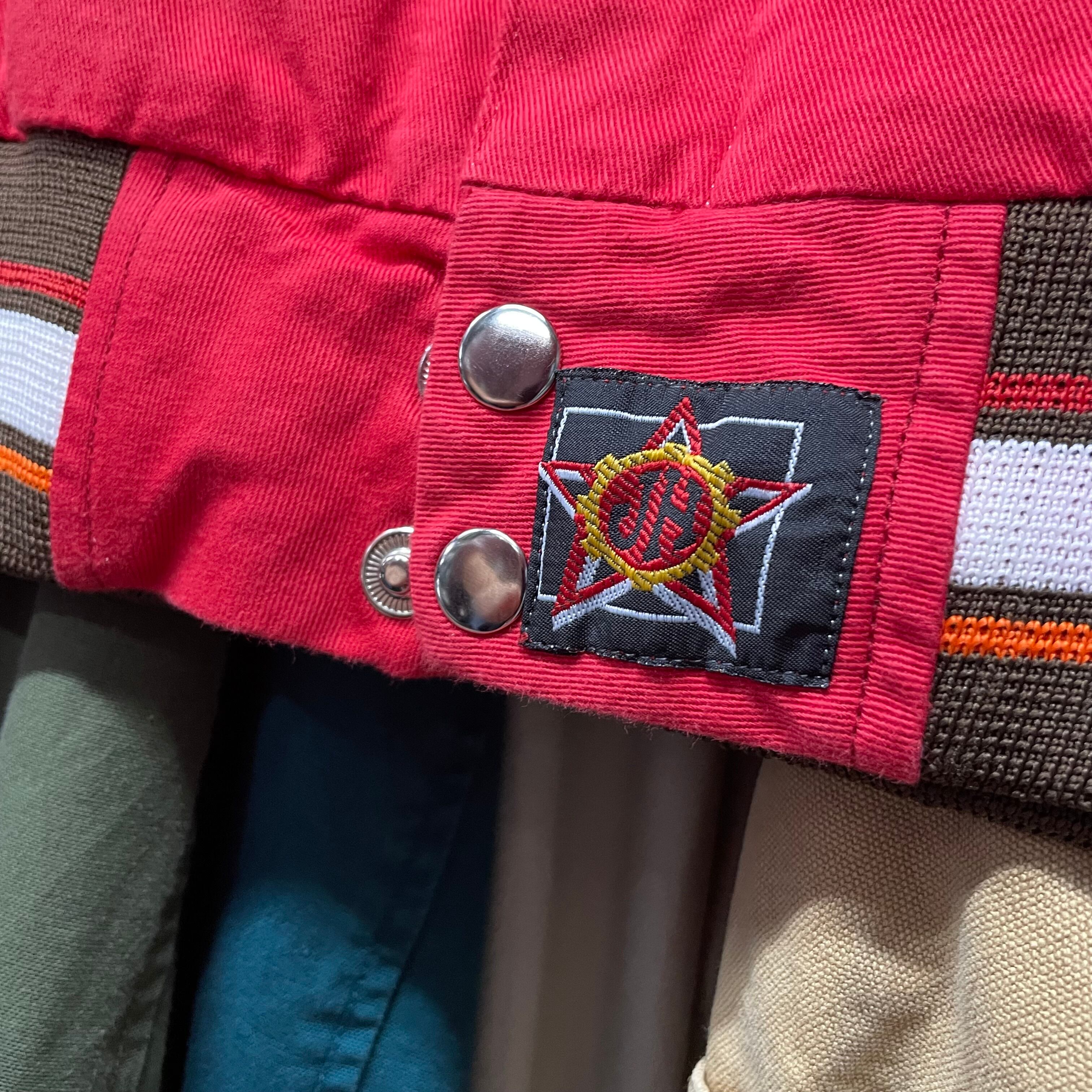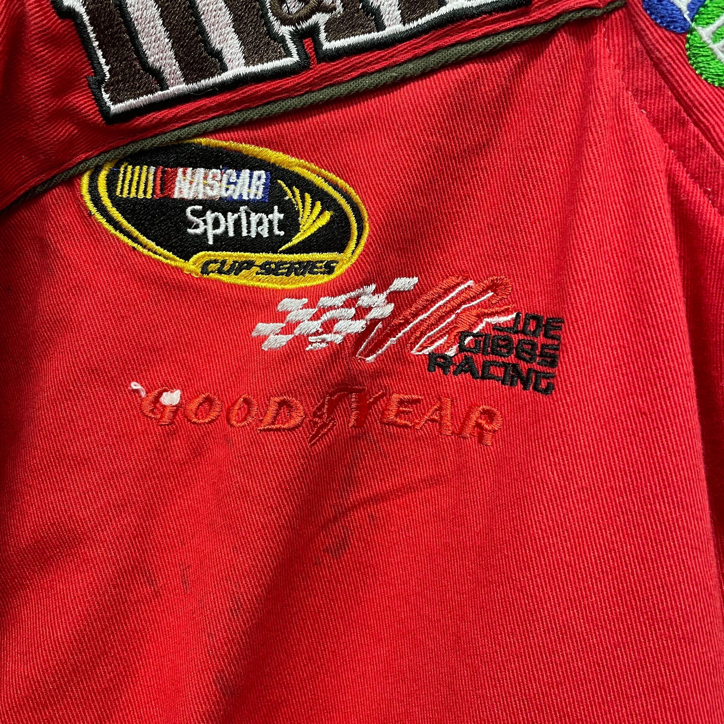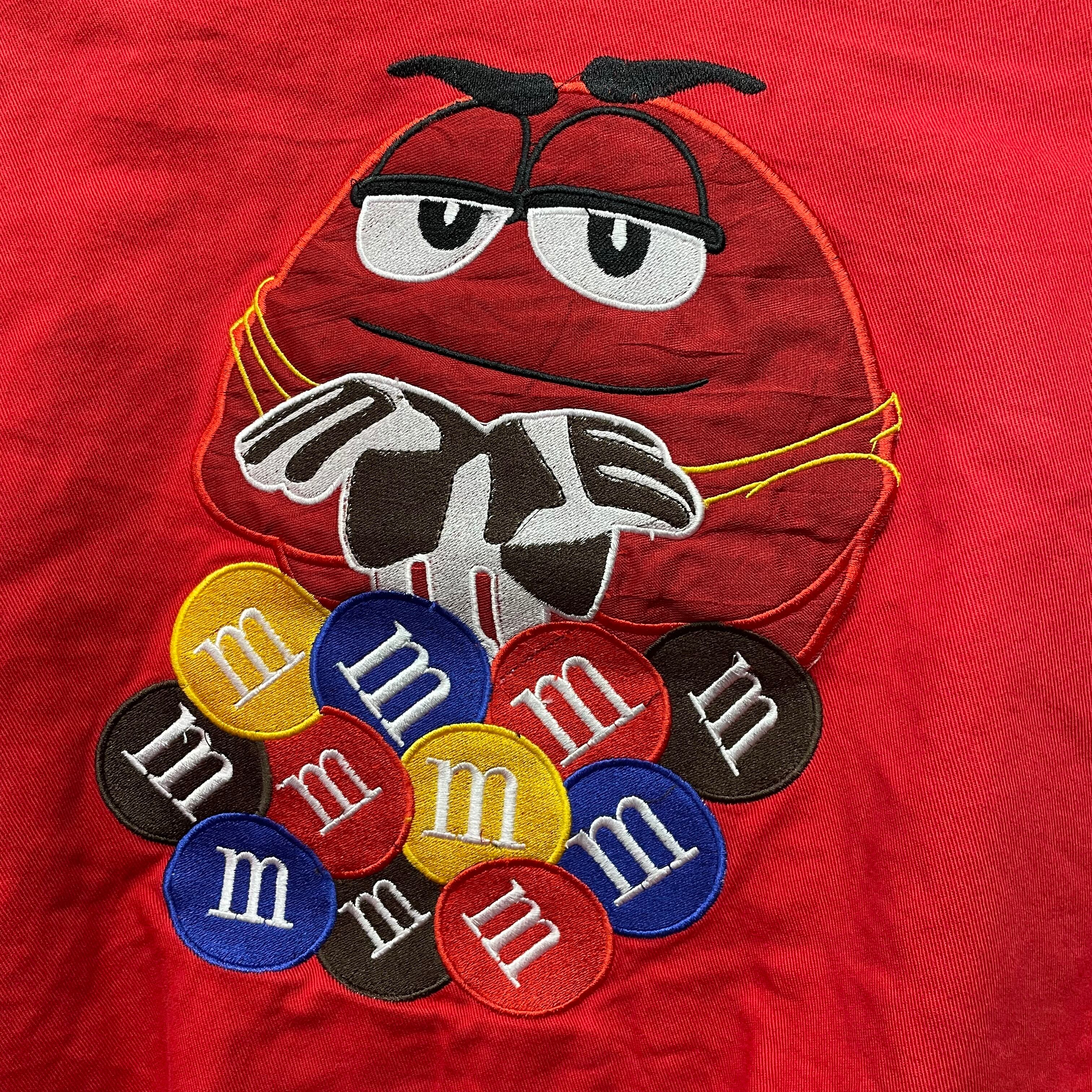 赤いボディにM&M’sキャラクターやスポンサー刺繍が映える、存在感抜群の一着です。