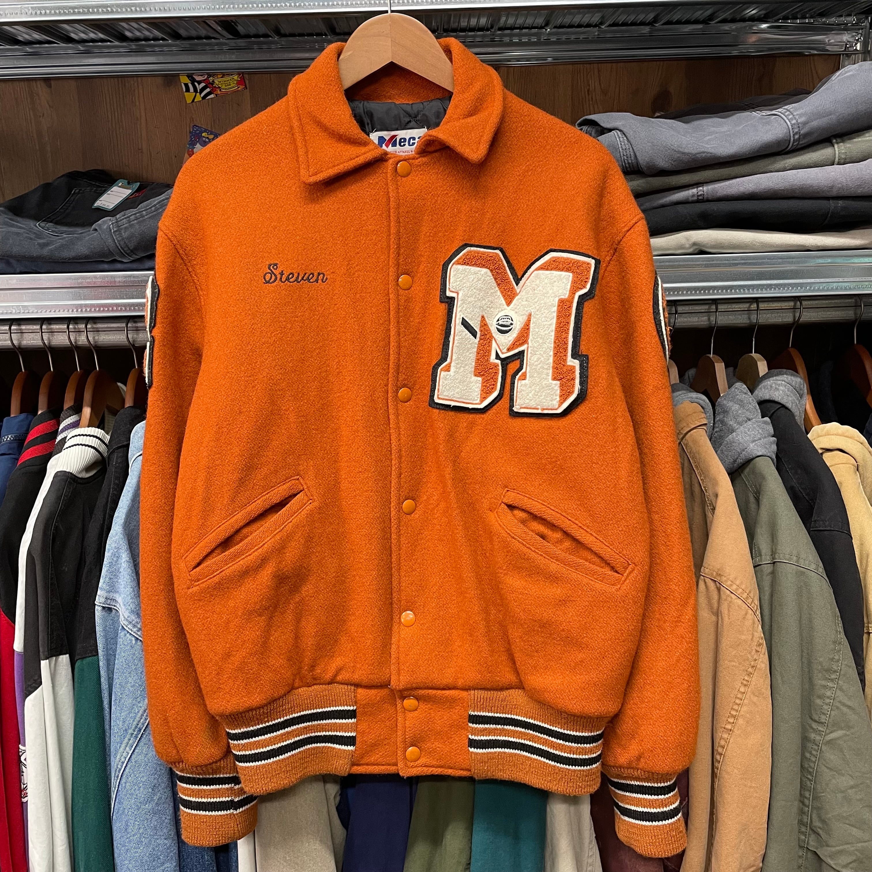古着らしい存在感がしっかりある、オレンジボディが主役級のスタジャンです。
