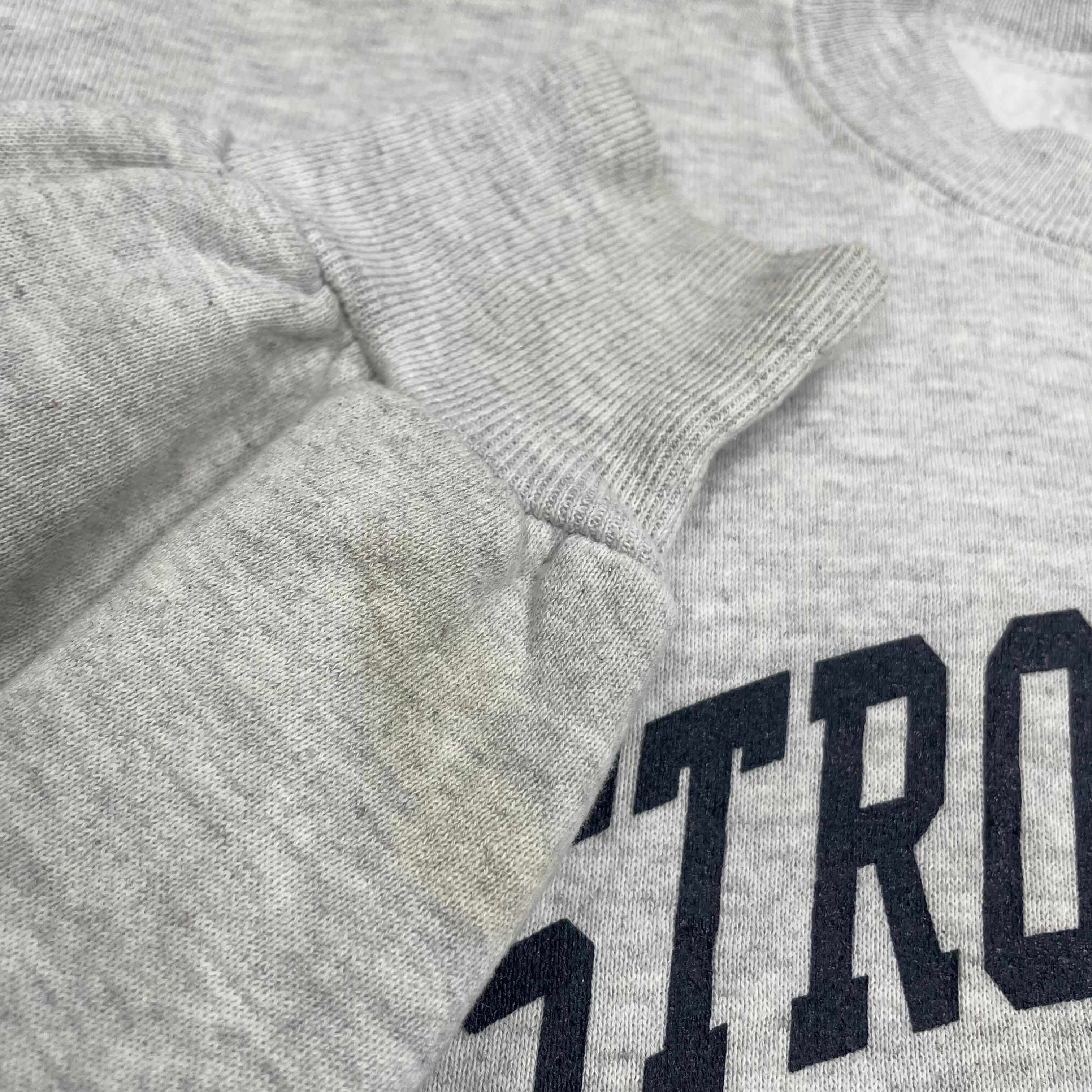 人気の高い STROM THURMOND高校フットボールチームのカレッジデザインで、霜降りグレー×ネイビープリントの王道アメカジルックス。