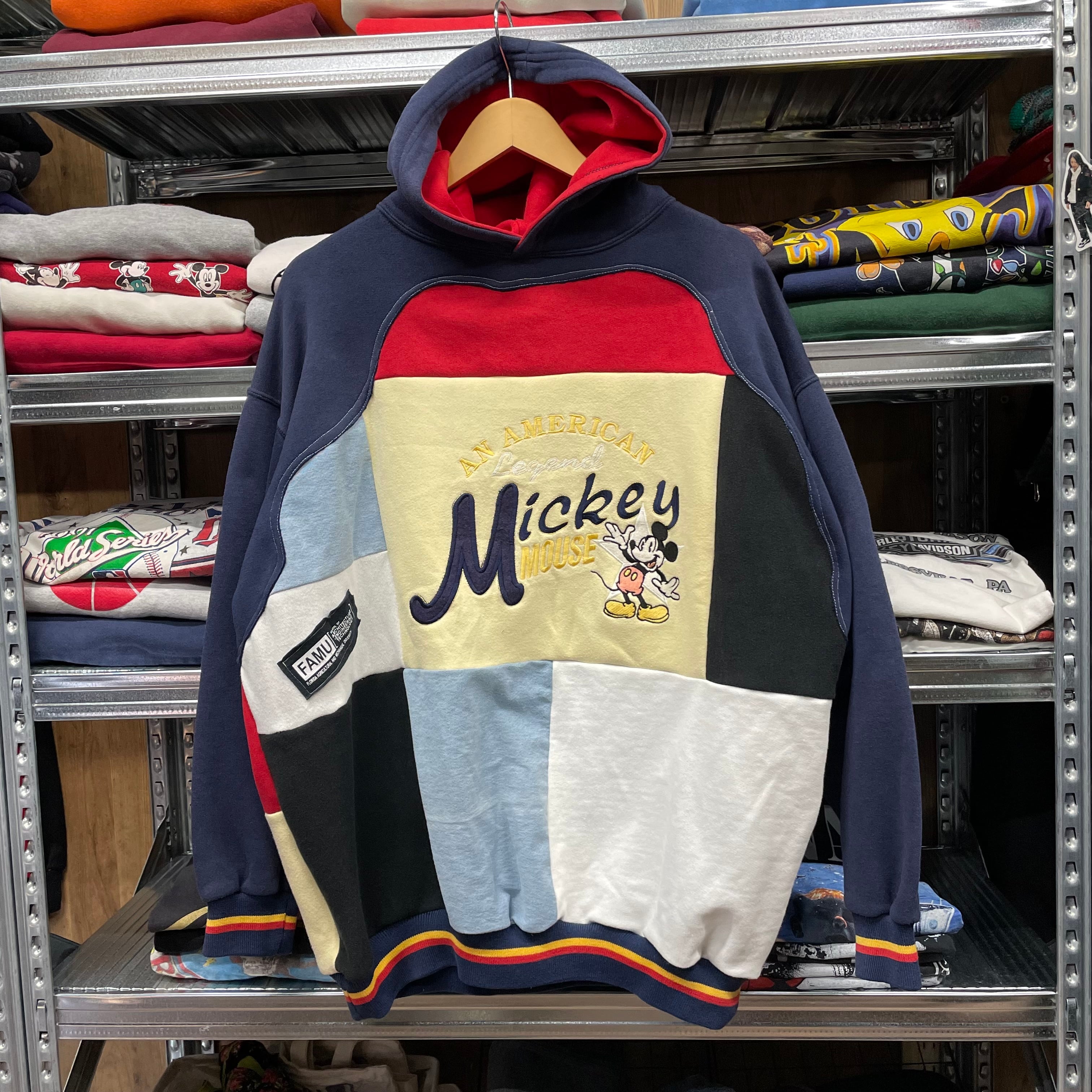 複数の古着生地を組み合わせたパッチワーク仕様で、