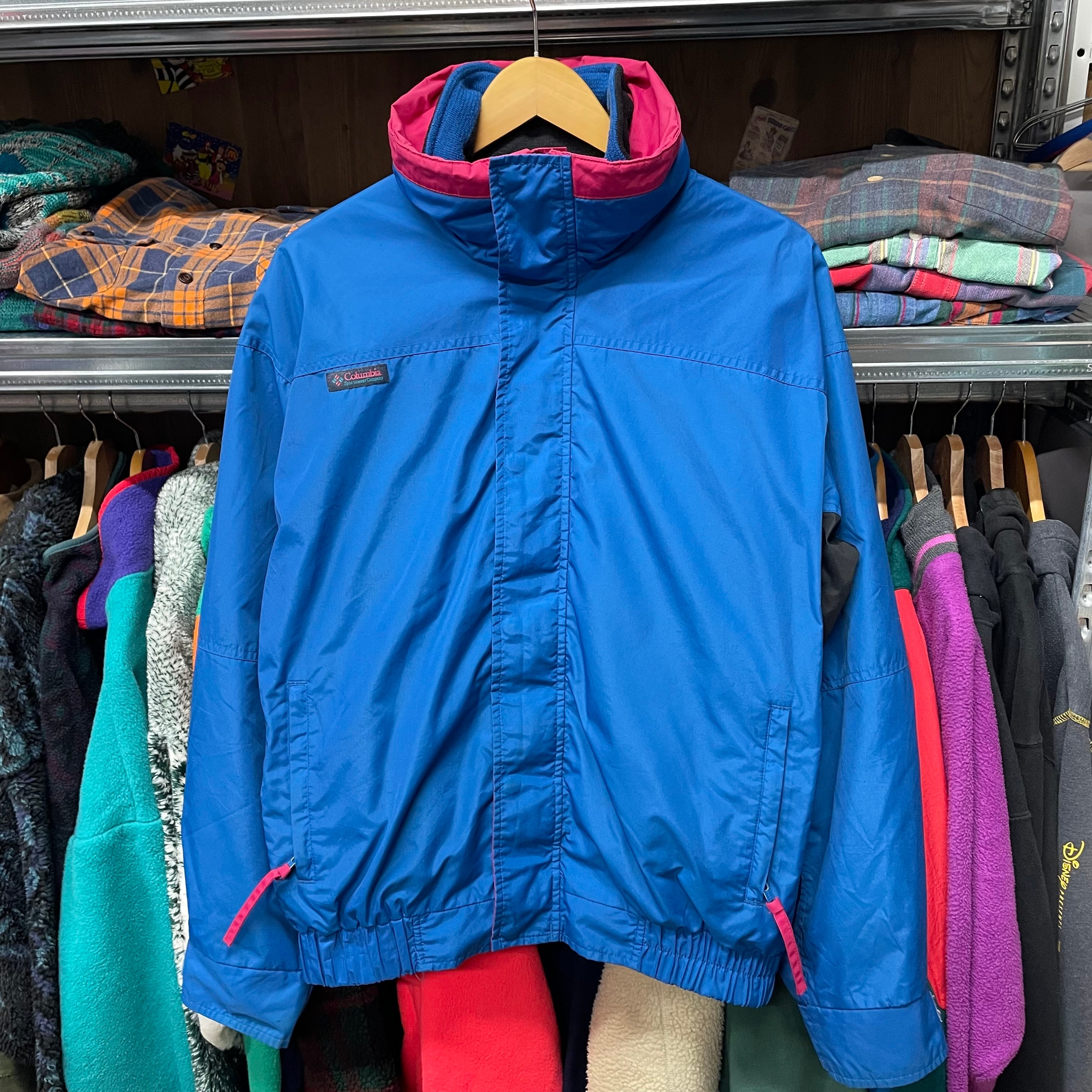 Columbiaらしい発色の良いブルーに、ピンクの差し色が効いたフリースライニングジャケット。