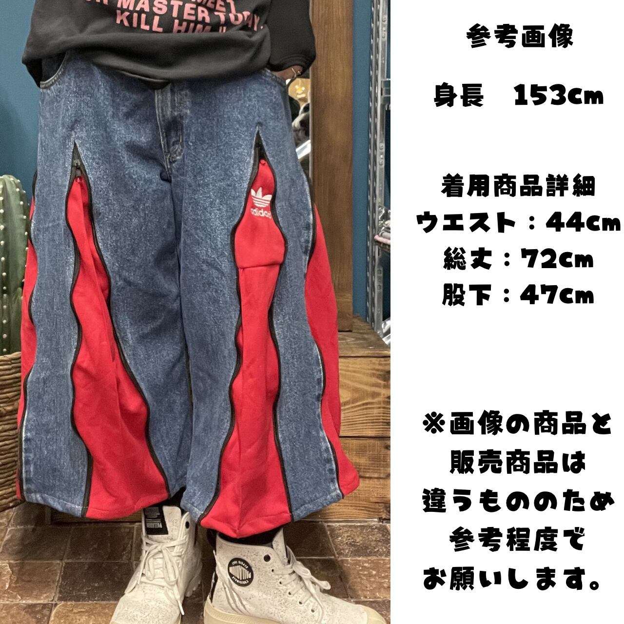 再構築 リメイクデニム クロップドパンツ adidas