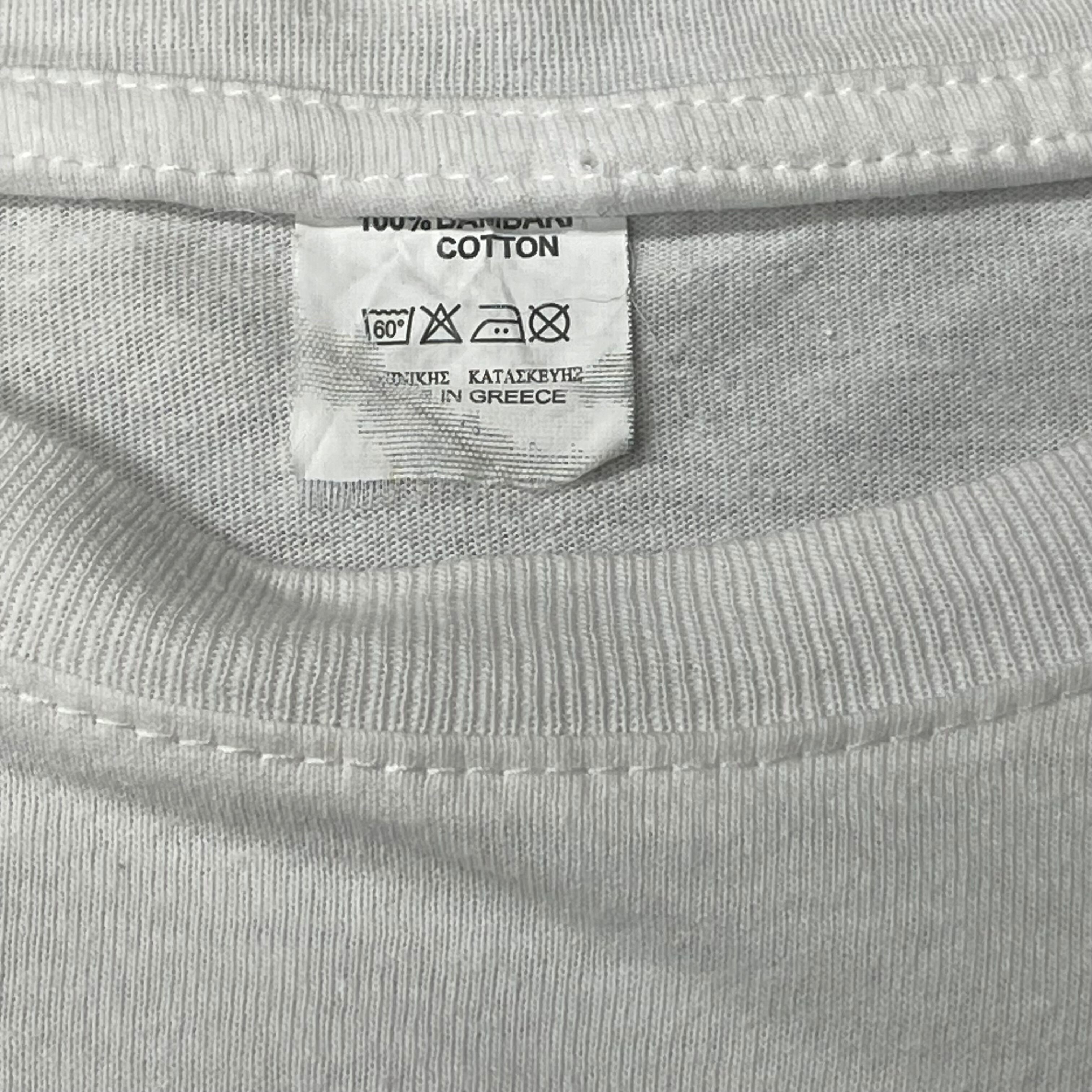 90年代頃にギリシャのタソス島(THASSOS)で展開されていた希少なスーベニアTシャツで、某人気キャラクターが赤いバンダナを巻きハーレー風のバイクに跨る「Born to be Wild」なパロディデザインが目を引く一着です。米国製とは一味違うユーロ古着特有の風合いや、裾のシングルステッチといったヴィンテージらしいディテールが魅力で、目立ったダメージもなくコンディションは良好、男女問わずゆったりと着用できるL相当のサイズ感となっております。